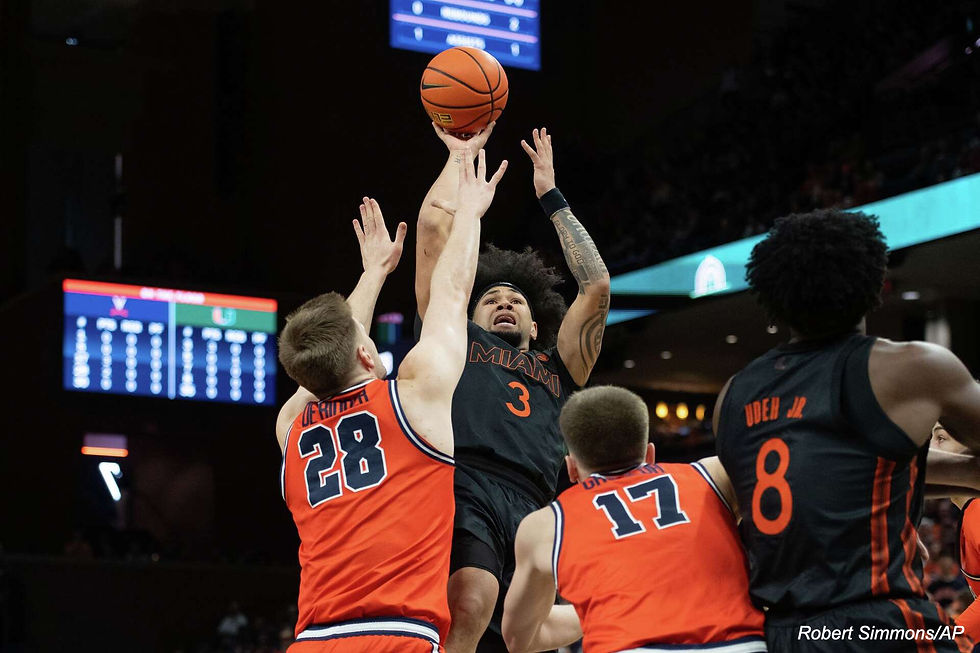 The latest momentum shift unfolded in stages. Miami built an early 11 point lead and carried a 44-39 advantage into halftime after scoring the final eight points of the first half. Virginia responded with improved ball movement and shot selection after the break. With the game tied at 59 with 11:33 to play, Mallory and De Ridder fueled a surge that pushed the Cavaliers ahead 68-61, their largest lead of the night.